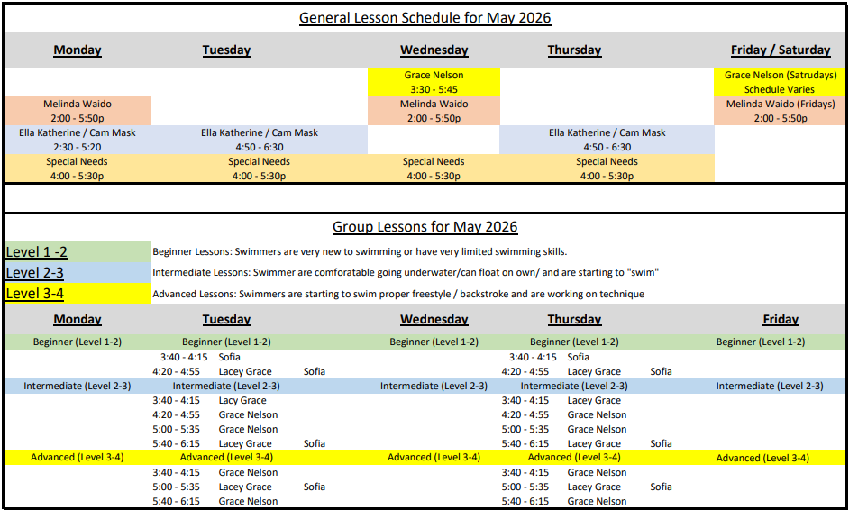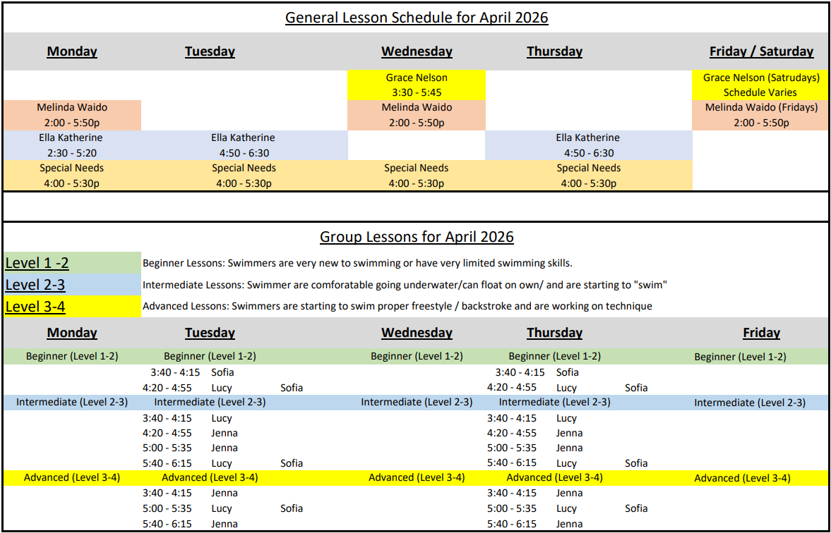 February Lessons Currently Open. March Group Lesson Schedule Opens 2/16 at 9AM